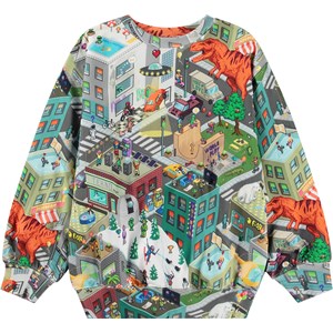 Mehrfarbiges Sweatshirt aus Öko-Baumwolle mit einer gebürsteten Innenseite, der weich und warm zu tragen ist. Das Sweatshirt hat eine lockere Passform, lange Ärmel, einen Rundhalsausschnitt mit geripptem Abschluss und einen nostalgischen und humorvollen Allover-Print, der von frühen 80er und 90er Arcade-Computerspielen inspiriert ist.