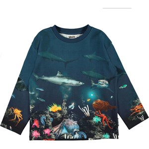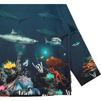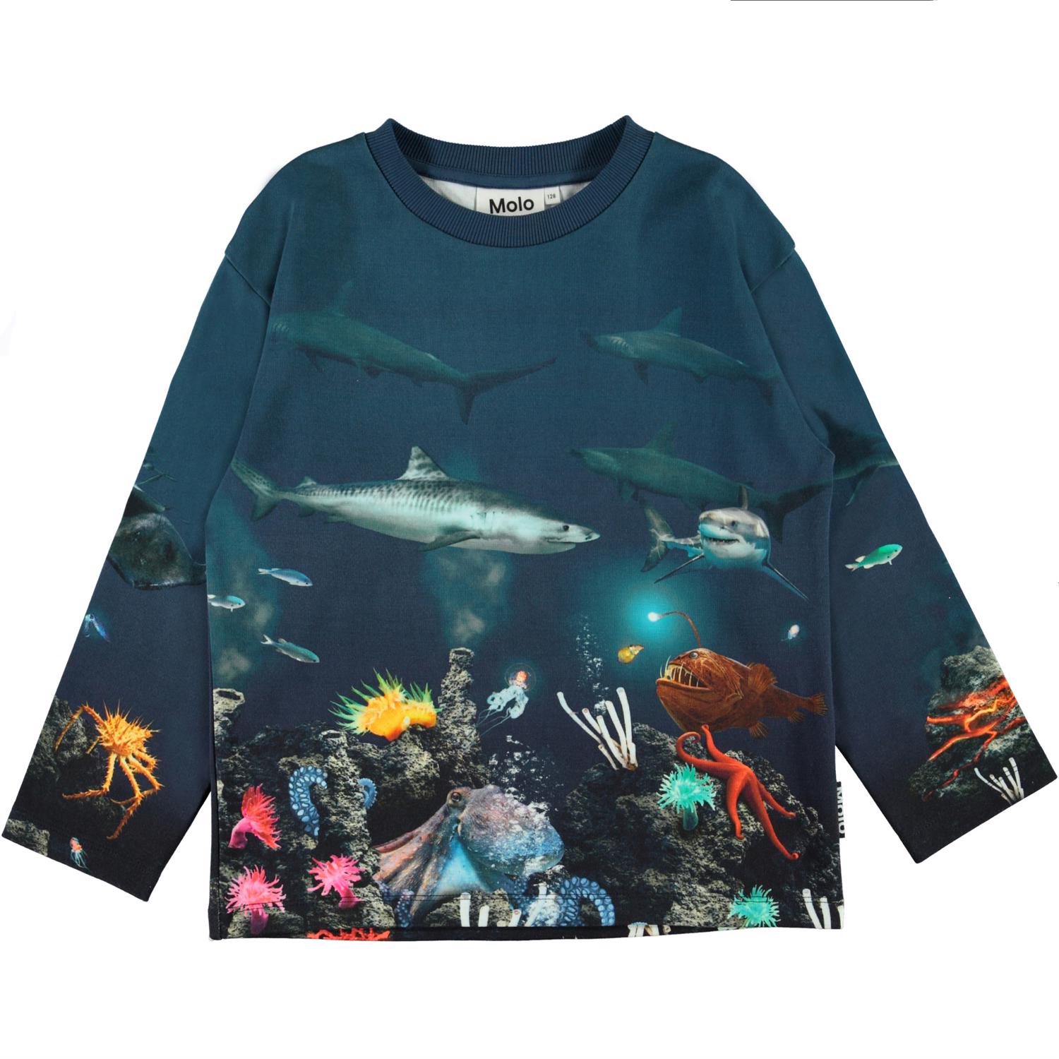 Tauche unter die Meeresoberfläche und sehe, was im Druck auf dem Langarm-Pullover Mountoo versteckt ist. Es gibt viele verschiedene Fische und vielleicht kannst Du auch einen Hai entdecken.