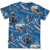 Ralphie ist ein hellblaues T-Shirt mit All-over-Druck von coolen Tieren, die verschiedene Sportarten ausüben.