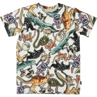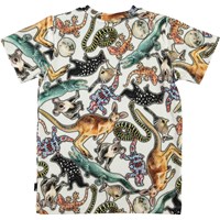 Ralphie ist ein weißes kurzärmeliges T-Shirt mit einem Allover-Print von der australischen Tierwelt.