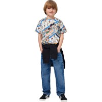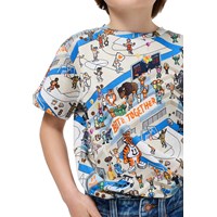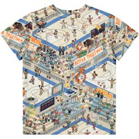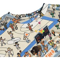 T-Shirt aus weicher, ökologischer Baumwolle mit rundem und geripptem Halsausschnitt. Das T-Shirt hat eine normale Passform mit einem pixeligen Druck von Basketballplätzen und lustigen Figuren.