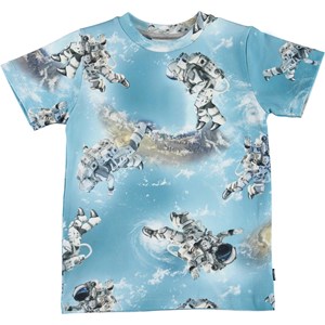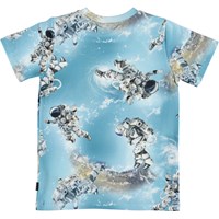 Ralphie ist ein hellblaues T-Shirt mit Aufdrucken von Astronauten, die sich im Weltraum bewegen.