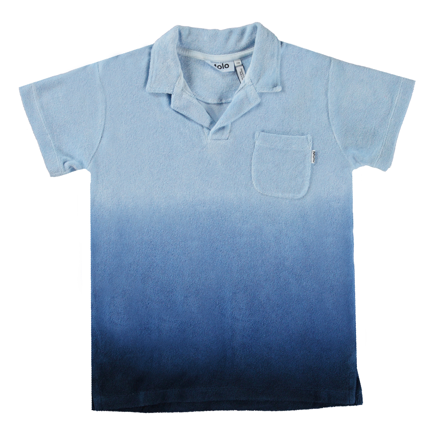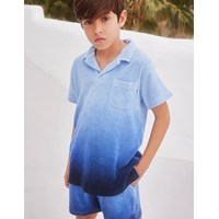 Frottee-Poloshirt aus 100% Öko-Baumwolle mit Dip-Dye-Effekt in Blautönen. Das Poloshirt hat eine lockere Passform und kurze Ärmel, einen Polokragen, eine Brusttasche und kleine Schlitze an der Seite. Das weiche Frottee und die lockere Passform machen es ideal zum Mitnehmen an den Strand oder ins Schwimmbad.