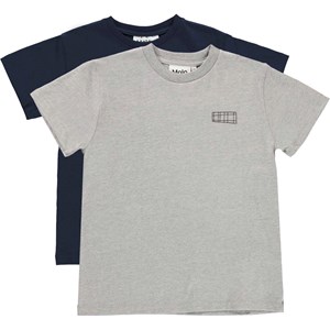 Rasmus ist das neue Basic-T-Shirt von Molo mit Logo-Print auf der linken Seite. Hier ist das T-Shirt im 2. Pack, das sowohl ein graues als auch ein dunkelblaues T-Shirt enthält.