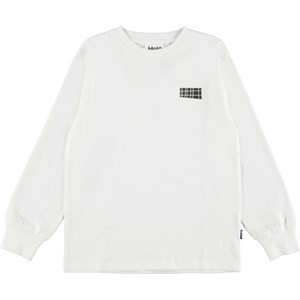 Lawn ist eine weiße Langarmbluse mit dem Molo-Logo auf der Brust.