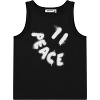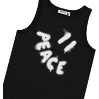 Ärmelloses Oberteil aus weicher Öko-Baumwolle mit einem runden Ausschnitt und großen Armlöchern. Das Oberteil hat eine lockere Passform mit einem weißen Graffiti-Stil lächelndes Gesicht und das Wort "Peace" als Mund.