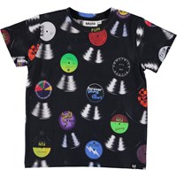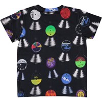 Raymont ist ein schwarzes T-Shirt mit Prints von verschiedenen Platten mit Molos Statements sowie und Prints. Raymont besteht aus 100% Baumwolle und hat kurze Ärmel.