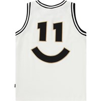 Weißes Tanktop aus Öko-Baumwolle in einer übergroßen Passform. Das Top hat gestreifte, gerippte Kanten um den Hals und die Armlöcher, die einen sportlichen Touch verleihen.
