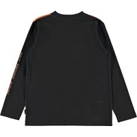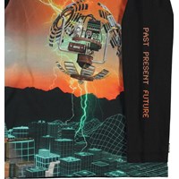 Reif ist ein schwarzes Langarm-T-Shirt mit einer Zeitmaschine auf der Vorderseite und Text auf einem Ärmel.