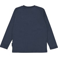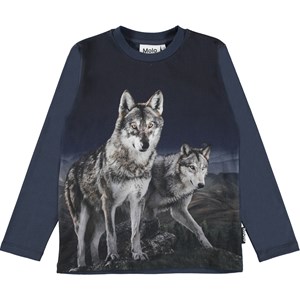 Reif ist ein langärmliges dunkelblaues T-Shirt mit einem Wolfsaufdruck auf der Vorderseite.