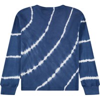 Langärmliges Oberteil in Blau-Weiß-Batik aus weicher Öko-Baumwolle mit Rundhalsausschnitt und drei Knöpfen vorne.