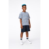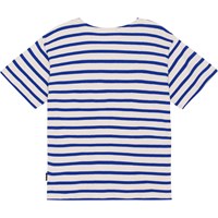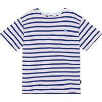 Rilee ist ein weiß-blaues bretonisch gestreiftes T-Shirt mit lockerer Passform, hergestellt aus 100% Öko-Baumwolle. Rilee hat einen coolen und maritimen Look, eine kleine Peace-Stickerei in Türkis auf der Vorderseite und eine normale Passform.