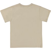 Beiges T-Shirt mit grafischem Frontdruck in Braun und Schwarz. Der Druck vermittelt die Botschaft, dass alles auf der Erde miteinander verbunden ist. Dieses T-Shirt ist aus 100% Öko-Baumwolle, hat kurze Ärmel, einen Rundhalsausschnitt mit gerippten Bündchen und ist im loose-fit.