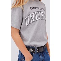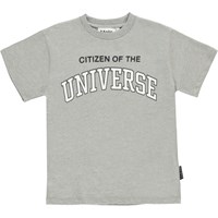 Riley ist ein graues T-Shirt mit dem Text "Citizen of the Universe" auf der Vorderseite.
