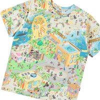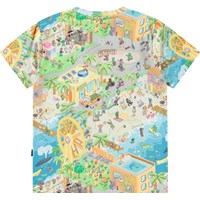 Beiges T-Shirt aus weicher Öko-Baumwolle mit kurzen Ärmeln und geripptem Ausschnitt. Das T-Shirt hat eine lockere Passform mit einem pixeligen Allover-Print der realen Welt, lustigen Charakteren aus Molos Kollektionen und vielen aufregenden Geschichten, die es im bunten Universum zu entdecken gibt.