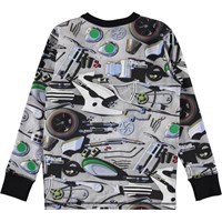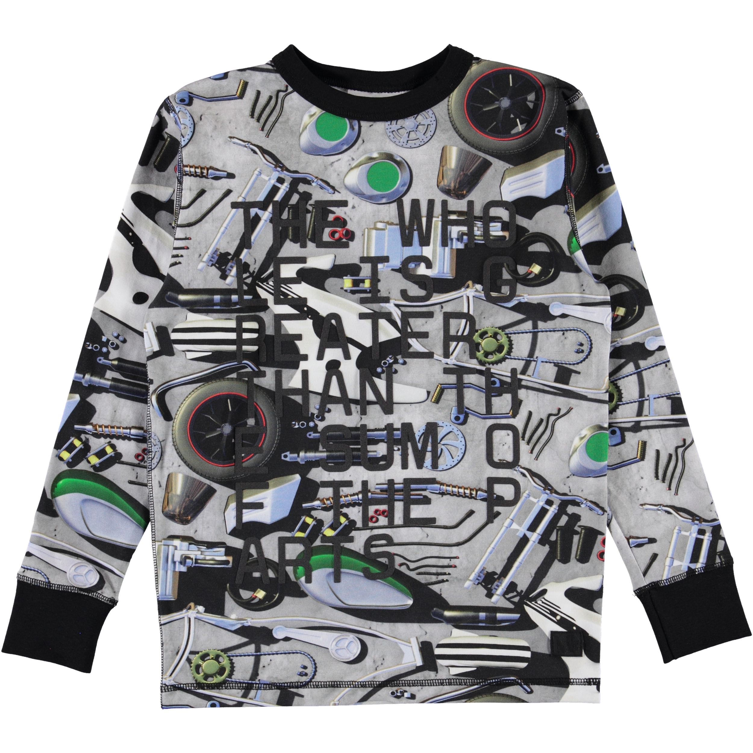 Finde alle Teile für das Motorrad auf dem langärmeligen Rill-T-Shirt. Rill hat einen Gummitext auf der Vorderseite.