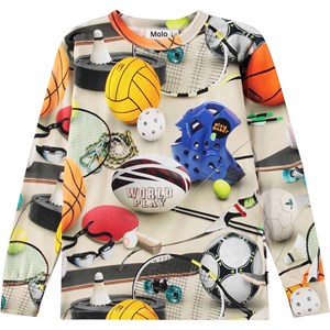 Mehrfarbige Bluse aus Öko-Baumwolle mit langen Ärmeln, gerippten Bündchen und geripptem Ausschnitt. Die Bluse hat eine normale Passform und ein Allover-Muster, das von der Idee der Olympischen Spiele als einem großen Spielplatz inspiriert ist, auf dem du mit allen Sportarten experimentieren kannst, die du dir wünschst. Das Muster zeigt alle Sportgeräte, die du dir vorstellen kannst, und ermutigt dich, loszulegen und Spaß zu haben!