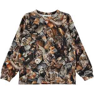Rin ist ein Langarmshirt mit Prints der verschiedenen Tiere des Waldes in Brauntönen.