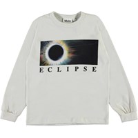 Rin ist eine weiße Langarmbluse mit einem schönen 'Eclipse' Druck auf der Vorderseite.