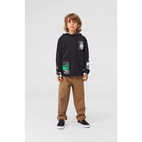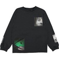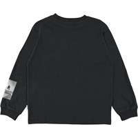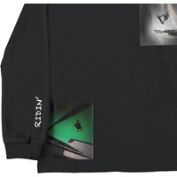 Rin ist ein schwarzer Langarmpullover mit einem Aufdruck von Skatern und dem Text 'Ridin' auf dem Ärmel.