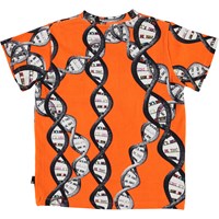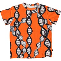 DNA ist ein kettenförmiges Makromolekül, dass das Erbe aller Lebewesen bildet. Finde auf dem orangefarbenen T-Shirt Road DNA-Zeichnungen mit dem Text "Es kommt darauf an, was drin ist". Road besteht aus 100% Baumwolle und hat kurze Ärmel.