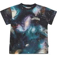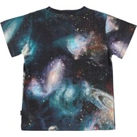 Road ist ein T-Shirt mit einem wunderschönen bunten Aufdruck der Galaxe und dem Aufdruck „Citizen of the Universe“ auf der Brust.