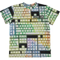 Auf dem T-Shirt Road im Print "Game On" wird Tetris mit den Teilen von Gamer-Tastaturen gespielt. Game on.