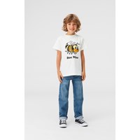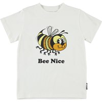 Road ist ein weißes T-Shirt mit dem Aufdruck einer Biene auf der Vorderseite und dem Text 'Bee nice'.