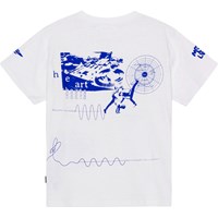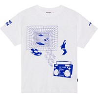 Rodney ist ein weißes T-Shirt mit blauem Platzierungsdruck aus 100% Baumwolle. Der Druck ist ein monochromer Druck im Collage-Stil mit einem musikalischen Thema in Form eines Old-School-Ghettoblasters, Breakdancers und Schallplatten sowie einem coolen Gridspace. Rodney hat einen Rundhalsausschnitt, Rippbündchen am Hals und eine übergroße Passform.