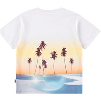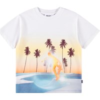 Übergroßes T-Shirt aus Bio-Baumwolle mit kurzen Ärmeln und geripptem Halsausschnitt. Das T-Shirt ist weiß mit einem Skate-Print.