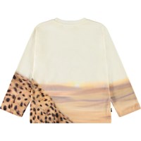 Sweatshirt aus weicher Öko-Baumwolle mit geripptem Ausschnitt. Das Sweatshirt hat eine lockere Passform mit einem Leoparden-Print, der sich auf den Ärmel und um den Rücken herum erstreckt.