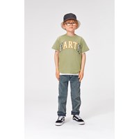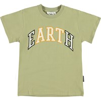 Roxo ist ein moosgrünes T-Shirt mit dem Aufdruck E-ART-H auf der Brust.