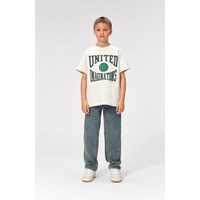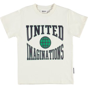Roxo ist ein weißes T-Shirt mit dem Aufdruck UNITED IMAGINATIONS zusammen mit einem grünen Basketball auf der Brust.