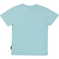Roxo ist ein hellblaues T-Shirt mit einem Aufdruck auf der Vorderseite verschiedener Tiere, das bereit ist, in den Weltraum zu reisen.