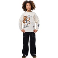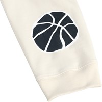 Beigefarbenes, langärmliges Oberteil aus weicher Öko-Baumwolle mit gerippten Kanten am Hals und an den Ärmeln. Das Oberteil hat eine lockere Passform und einen basketballinspirierten Druck sowie den Text 'Unity'.