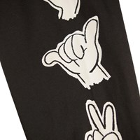 Schwarzes Langarmshirt aus Öko-Baumwolle mit geripptem Ausschnitt und Ärmeln. Das Langarmshirt hat eine lockere Passform mit einem Druck von niedlichen und lustigen Handzeichen.