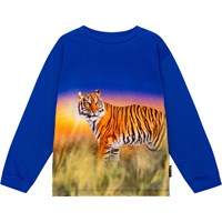 Rube ist eine blaues Shirt mit langen Ärmeln aus 100% Öko-Baumwolle. Der Aufdruck auf der Vorderseite zeigt einen Tiger in der Abenddämmerung, der nach einem Abendsnack sucht. Vielleicht sollte er einfach eine Karotte essen? Rube hat einen Rundhalsausschnitt, Rippbündchen am Hals und an den Ärmeln und eine lockere Passform.