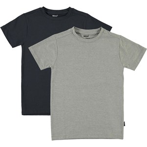 Packung mit zwei Baumwoll-T-Shirts in Grau und Blau.