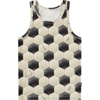 2er-Pack Tanktops aus weicher Öko-Baumwolle. Das Set enthält ein schwarzes Tanktop und eines mit einem Fußball-Print.