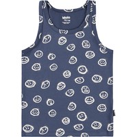 2er-Pack Tanktops mit breiten Trägern und Rundhalsausschnitt aus weicher Bio-Baumwolle. Das Set enthält ein dunkelblaues Top und eines mit einem Aufdruck von lächelnden Gesichtern. Kombinieren Sie es mit den passenden Boxershorts für ein komplettes Set.