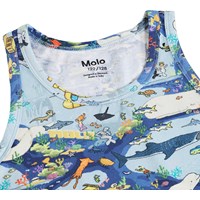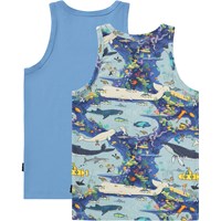 2er-Pack Westen aus weicher, ökologischer Baumwolle mit breiten Trägern und Rundhalsausschnitt. Das Pack enthält eine blaue und eine mit einem Druck von Meerestieren und lustigen Figuren.