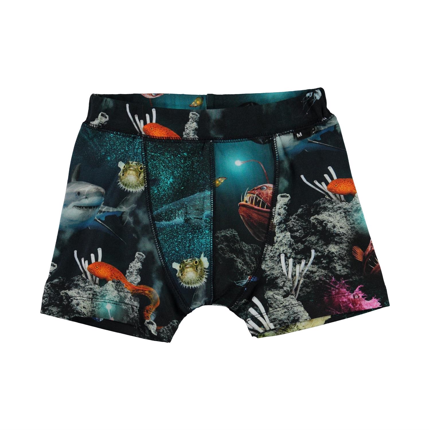 Boxershorts mit einem Aufdruck der Tiefsee, wo man viele verschiedene Arten von Fischen sehen kan. Die Shorts haben eine elastische Taille, die für guten Komfort sorgt.