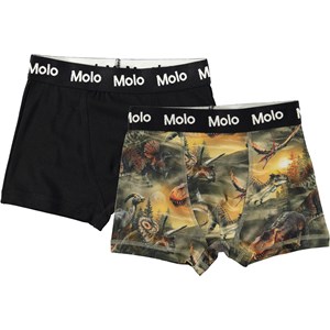 2er-Pack unserer erstklassigen Justin Unterhose. Diese Version enthält eine schwarze und eine mit allover Dino-Druck. Der Druck zeigt viele verschiedene Dinosaurier, die kurz vor Sonnenaufgang im Nebel durch die Sanddünen wandern. Über ihnen ist der Umriss des Mondes, der sie daran erinnert, dass sie Teil eines Größeren sind. Die Unterhose ist aus 100% weichem Material. In der Taille befindet sich ein breites Gummiband in Schwarz mit weißem Molo-Logo. Kombineren Sie dieses 2er-Pack mit unserem Jayden 2er-Pack mit entsprechenden Unterhemden.