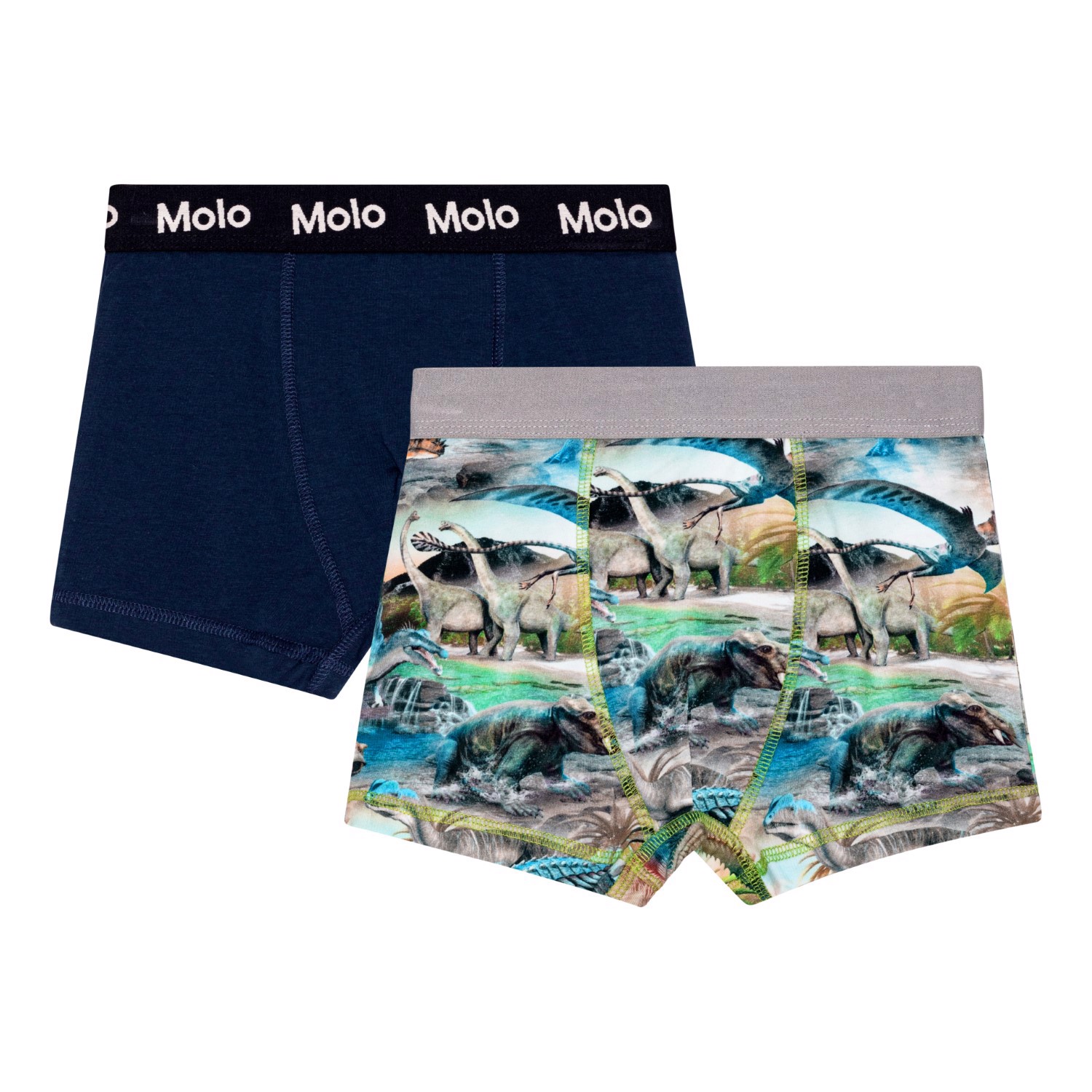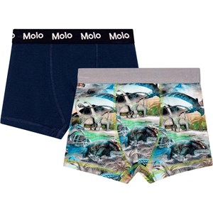2er-Pack Öko-Unterhosen. Ein Paar in Grau und ein Paar mit durchgehendem Dino-Print.