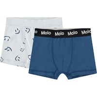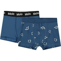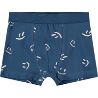 2er-Pack Boxershorts aus weicher Öko-Baumwolle. Das Set enthält eine dunkelblaue Boxershorts und eine mit einem Druck von lächelnden Gesichtern.