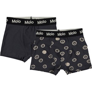 2er-Pack unserer erstklassigen Justin Unterhose. Diese Version enthält eine schwarze und eine mit Allover-Print. Der Aufdruck ist beige und besteht aus vielen kleinen lächelnden Gesichtern und Peace-Zeichen.Die Unterhose ist aus 100% weichem Material mit Stretch für angenehmen Tragekomfort und uneingeschränkte Bewegungsfreiheit. In der Taille befindet sich ein breites Gummiband in Schwarz mit beigem Molo-Logo. Kombineren Sie dieses 2er-Pack mit unserem Jayden 2er-Pack mit entsprechenden Unterhemden.