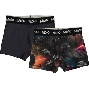 2er-Pack unserer erstklassigen Justin Unterhose. Diese Version enthält eine Dunkelgraue und eine mit Allover Weltraumdruck. Ein Weltraumdruck mit Retro-Vibe. Der Weltraum ist voller klarer, wilder Farben und voller Spaß. Hier folgen wir abenteuerlustigen Raumschiffen und UFOs, die in Asteroidengürteln nach neuen Abenteuern suchen. Die Unterhose ist aus 100% weichem Material. In der Taille befindet sich ein breites Gummiband in Schwarz mit weißem Molo-Logo. Kombineren Sie dieses 2er-Pack mit unserem Jayden 2er-Pack mit entsprechenden Unterhemden.