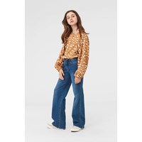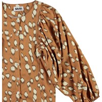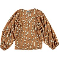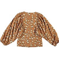 Rida ist ein braunes Hemd mit einem Druck von hellen Flecken, das wie Hirschfell aussieht. Das Shirt hat große, breite Puffärmel, die dem Shirt eine schöne Form verleihen.