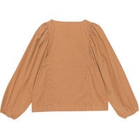 Orangefarbene Hemdbluse aus geripptem Samt. Diese Hemdbluse aus 100% Baumwolle hat lange Ärmel mit weitem Volumen, einen Rundhalsausschnitt, eine knopflose Front, weiße Knöpfe in Perlmuttlook und eine lockere Passform. Kombinieren Sie möglicherweise diese Hemdbluse mit dem Rock Boletta in der gleichen Farbe für das perfekte Set an.