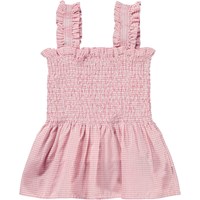 Rosine ist ein rot-weiß kariertes Smock-Top mit Trägern. Der Smock am oberen Ende des Oberteils ist elastisch und erzeugt im unteren Teil einen voluminösen Effekt.